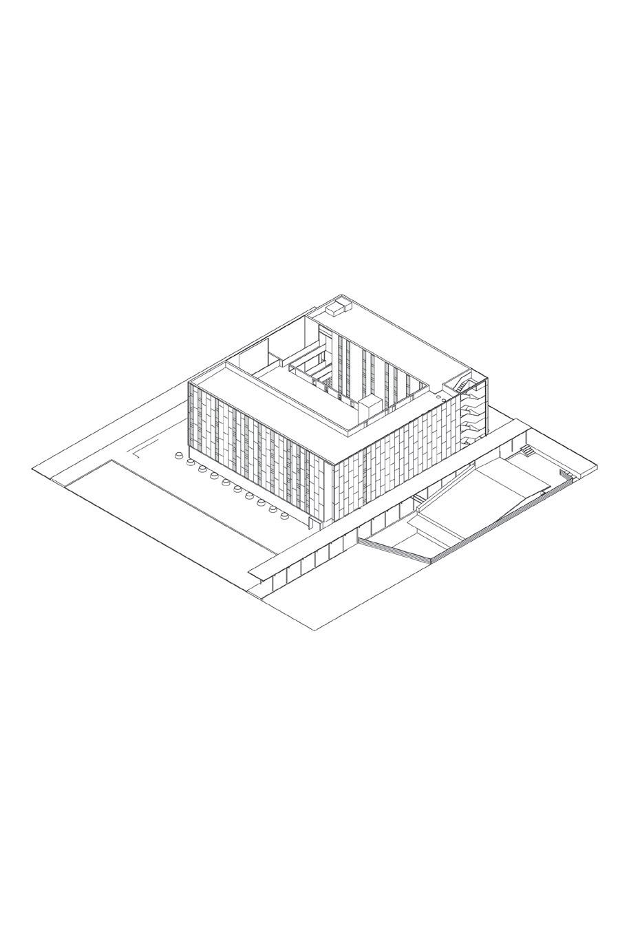 En consecuencia, el nuevo edificio recoge aquel sentido de pertenencia, organizando el programa en torno a dos patios abiertos. Mientras uno es estrecho, el otro es ancho.