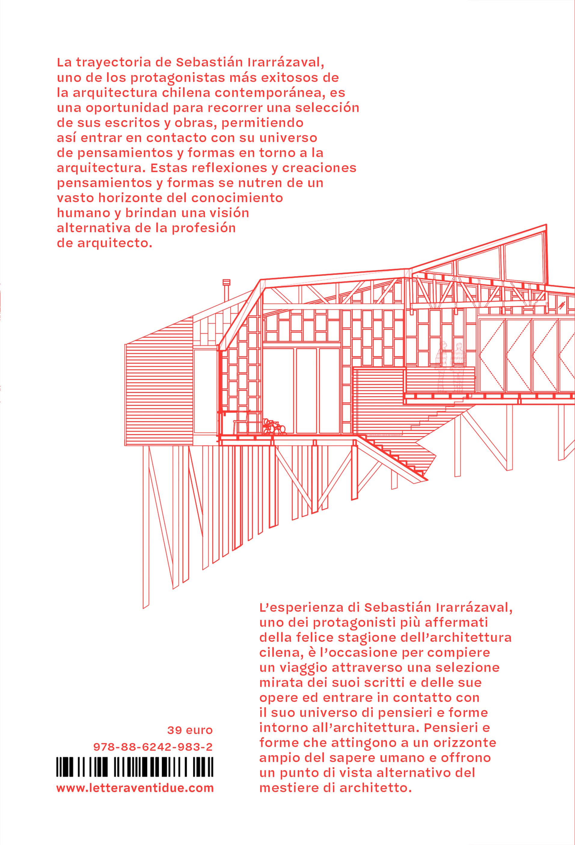 ITA — La selezione di questi dodici progetti, organizzati in schede, mira a indicare, nella vasta opera realizzata e non di Sebastián Irarrázaval, alcuni temi molto precisi per mettere a fuoco le sue idee sull’architettura e i dispositivi progettuali impiegati per tradurre tali idee in segni eloquenti. Non si tratta, dunque, di una monografia nel senso classico del termine, ma piuttosto di un tentativo di chiarire come questi temi si traducano in scelte e caratteristiche architettoniche. Ogni scheda di progetto presenta non solo immagini e disegni, ma anche brevi descrizioni tratte dalle relazioni che hanno accompagnato ciascuna opera sin dalle iniziali intuizioni progettuali. Prima di passare al corpo vivo di questo libro, va sottolineato che nascere e crescere in una città-mondo, circondata da montagne, colline di varia altezza e attraversata da un fiume, il Mapocho, irreggimentato in canali che scorrono all’interno di valli pianeggianti, come Santiago del Cile, implica confrontarsi con una geo-grafia e un clima estremamente complessi. È questa geografia, instabile a causa dei frequenti e forti terremoti, più del clima e al di là di altre vicende biografiche e della formazione specifica in ambito architettonico, che segna indiscutibilmente il modo in cui Irarrázaval interpreta la relazione tra architettura e contesto.