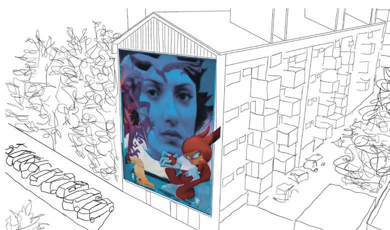 Sketch della vista aerea del graffito “La storia infinita” realizzato da Mr. Wany e altri artisti internazionali sulla facciata spoglia in via Giuseppe di Vittorio in occasione della quindicesima edizione dell’evento di cultura Hip Hop “Amazing Day” 2022.