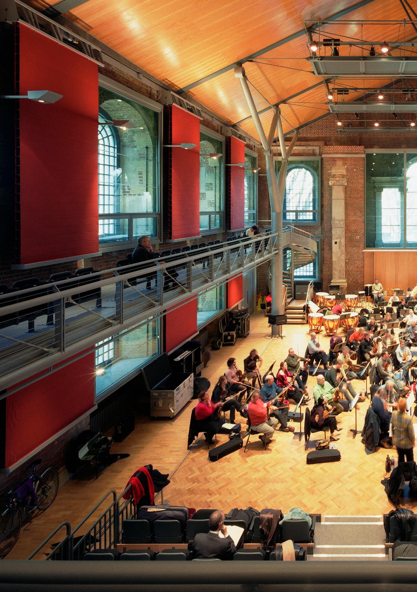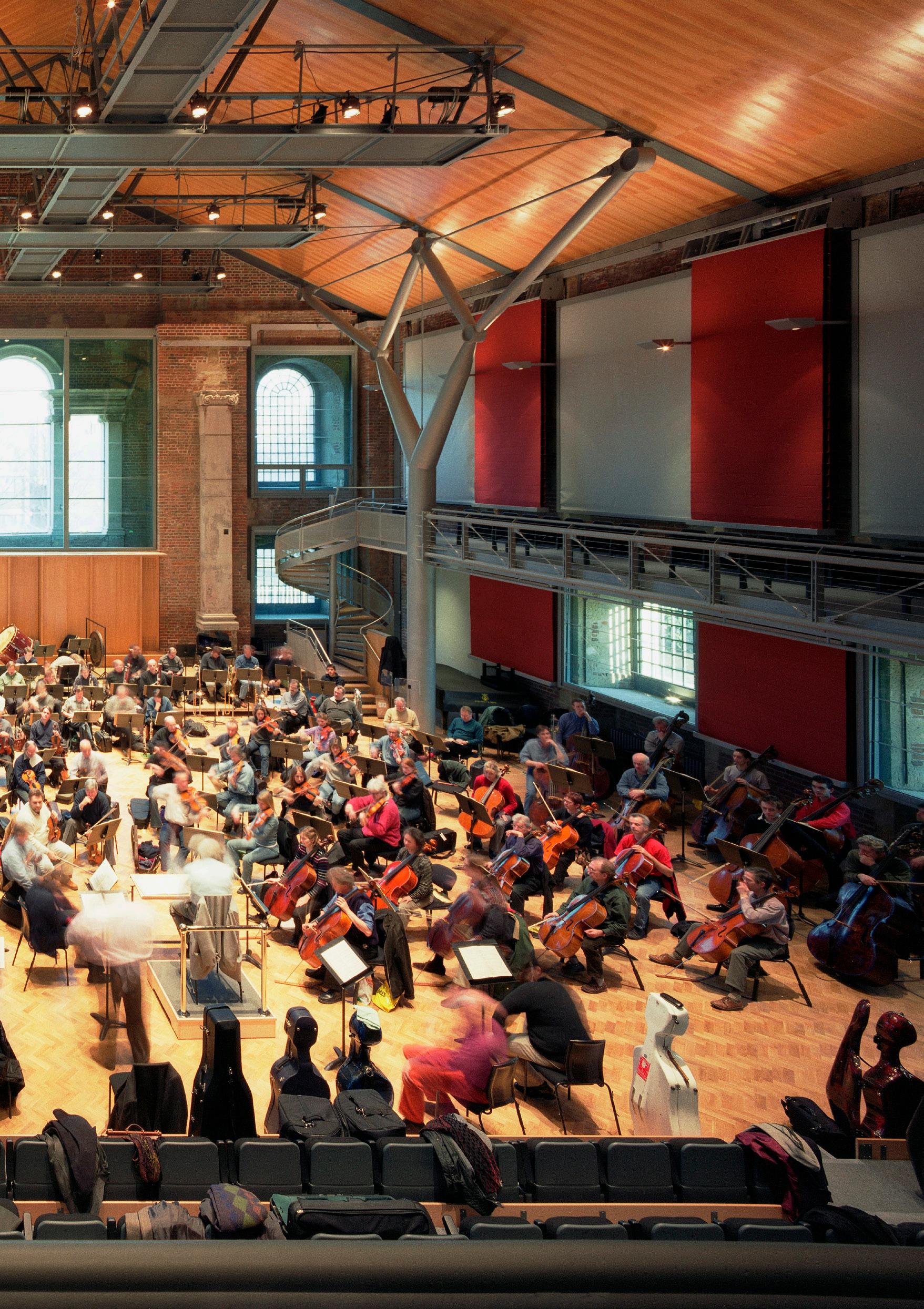 Our challenge here was to restore the dilapidated Grade I listed church and create a visually and acoustically stunning space for the London Symphony Orchestra. Externally, we focused on restoration, only adding a new roof and artists’ entrance on the site of the old vestry. Within, an entirely new interior was constructed. The volume of the church forms the main rehearsal, education and performance space. Below, the previously unsafe crypt was rebuilt to house a café, and extensions were excavated under the churchyard to create space for practice rooms, offices, plant and visitor facilities.