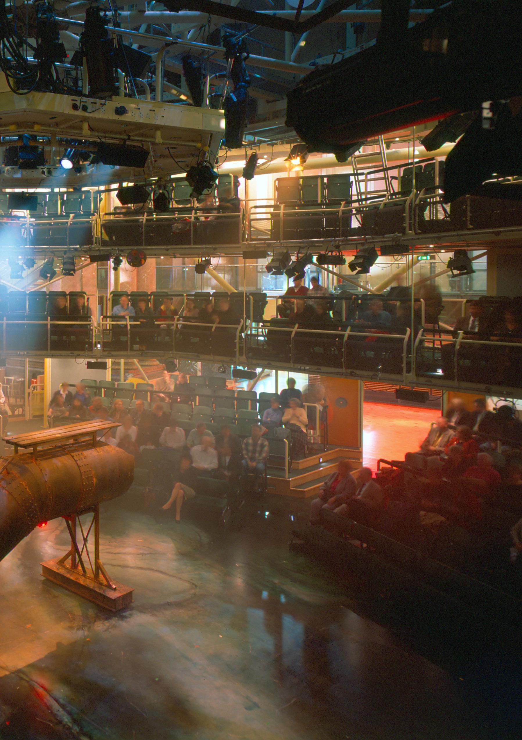 Our concept for this immersive theatre-in-the-round features a lightweight structure boldly inhabiting the space, its modernity in stark contrast to the traditional splendour of the Edwardian hall. The seven-sided construction spans between existing columns to avoid loading the floor and an odd number of facets ensures that members of the audience do not directly face each other. The original design was completed in 1976, and 20 years later, following the 1996 IRA bomb, we were invited back to restore the hall and make further adjustments to the theatre itself.