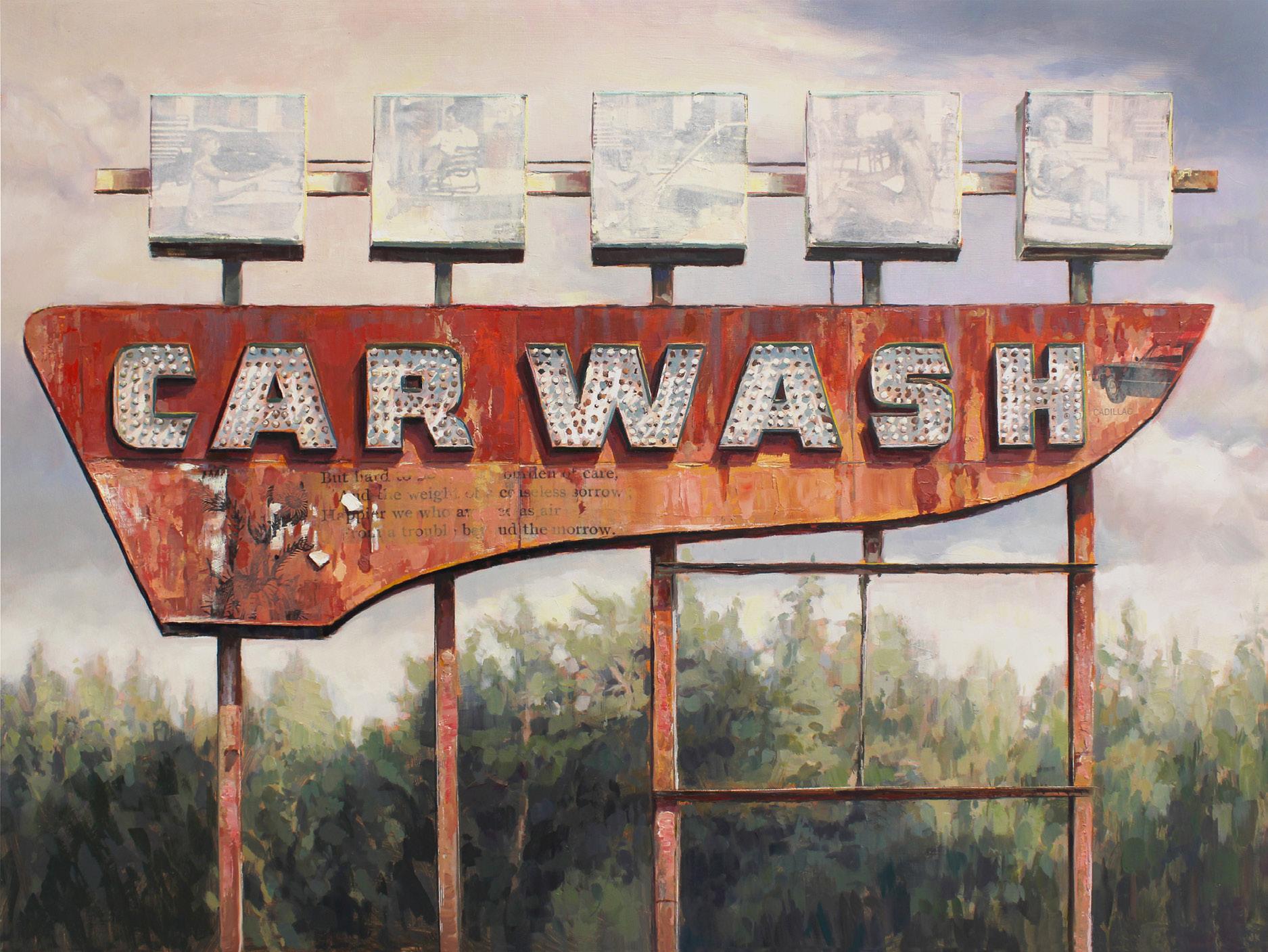 While his subject matter often leans toward the industrial or utilitarian, Kowalski’s color palette is surprisingly tender. He layers subtle, nuanced tones to capture the faded reds of rust, the chalky grays of weathered asphalt, and the ghostly greens of oxidized metal. These choices lend his work a tactile realism, making surfaces almost palpable to the eye. His fascination with craft extends beyond painting technique. He has a deep respect for “the humanity found in the craftsmanship of old”— in the era when signs were hand-painted, cars were assembled by hand, and every detail bore evidence of a maker’s touch. In our age of digital printing and mass production, his paintings serve as quiet tributes to human labor and ingenuity.