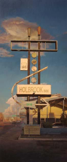 Somewhere along Route 66, the Holbrook Inn stands like a mighty secular cross, like an emblem of a highway that’s holy in its own nostalgic way. The Holbrook’s two-tiered sign — a large rectangle set high between two poles, each one topped as though for a torch whose flame died out long ago, and a smaller rectangle set low — once offered rest and respite for travelers on the long road. Maybe color TV, cable, and a continental breakfast. Who knows? Now, the only thing it seems to offer is “1 BED.”