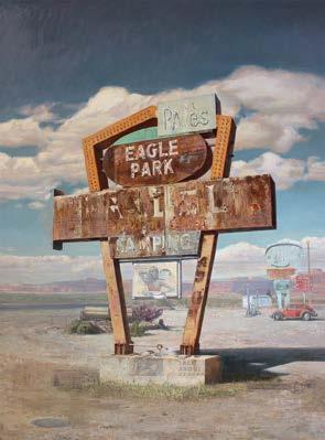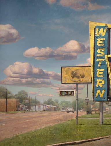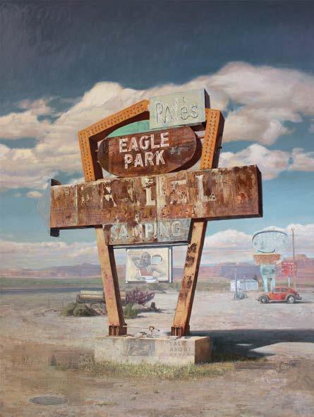 Glimpse of Greatness (detail), 2023, oil on panel, 72" x 30" Rest and Refuel, 2023, oil on panel, 26" x 44"But Kowalski, kids in tow, still takes such ventures. Only now the focus isn’t sightseeing so much as the creation of a record of a region’s time — what it was and what it is — before there’s no longer anything left to say.
