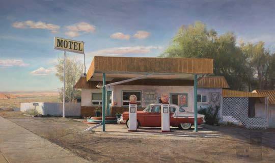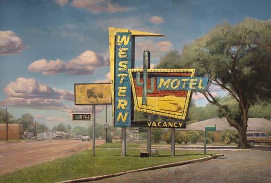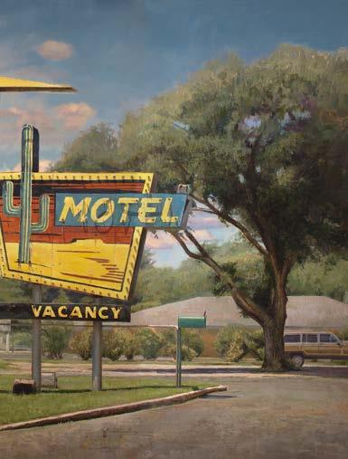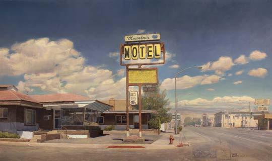 — Michael Abatemarco Mobile Base Camp, 2023, oil on panel, 24" x 24" Best Western, 2023, oil on panel, 48" x 72"Best Western, 2023