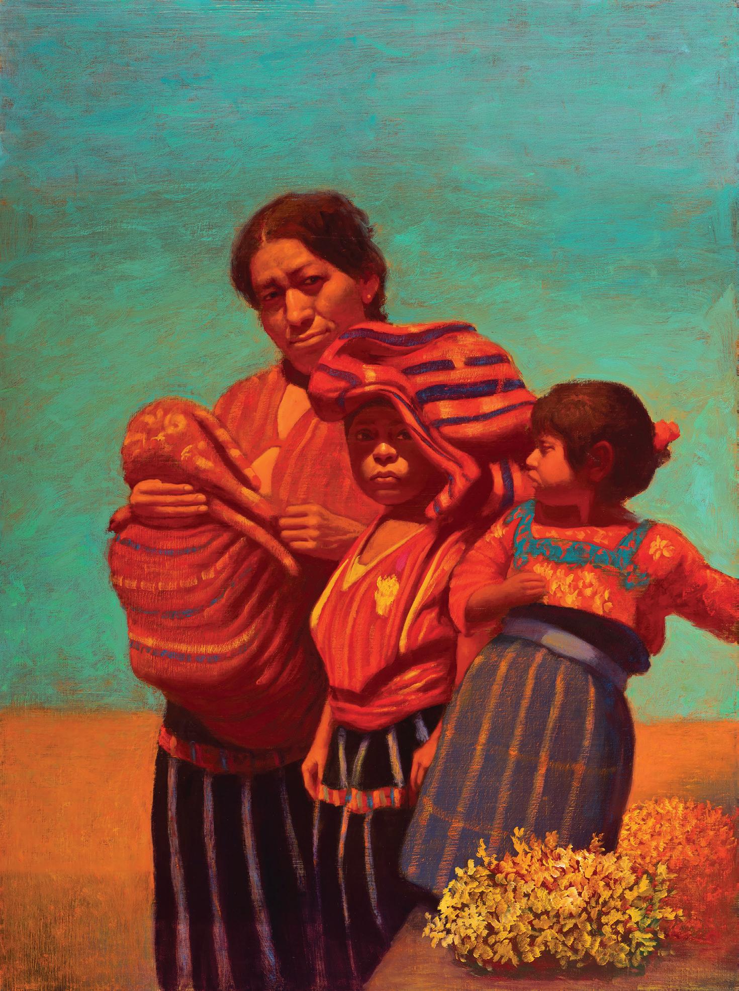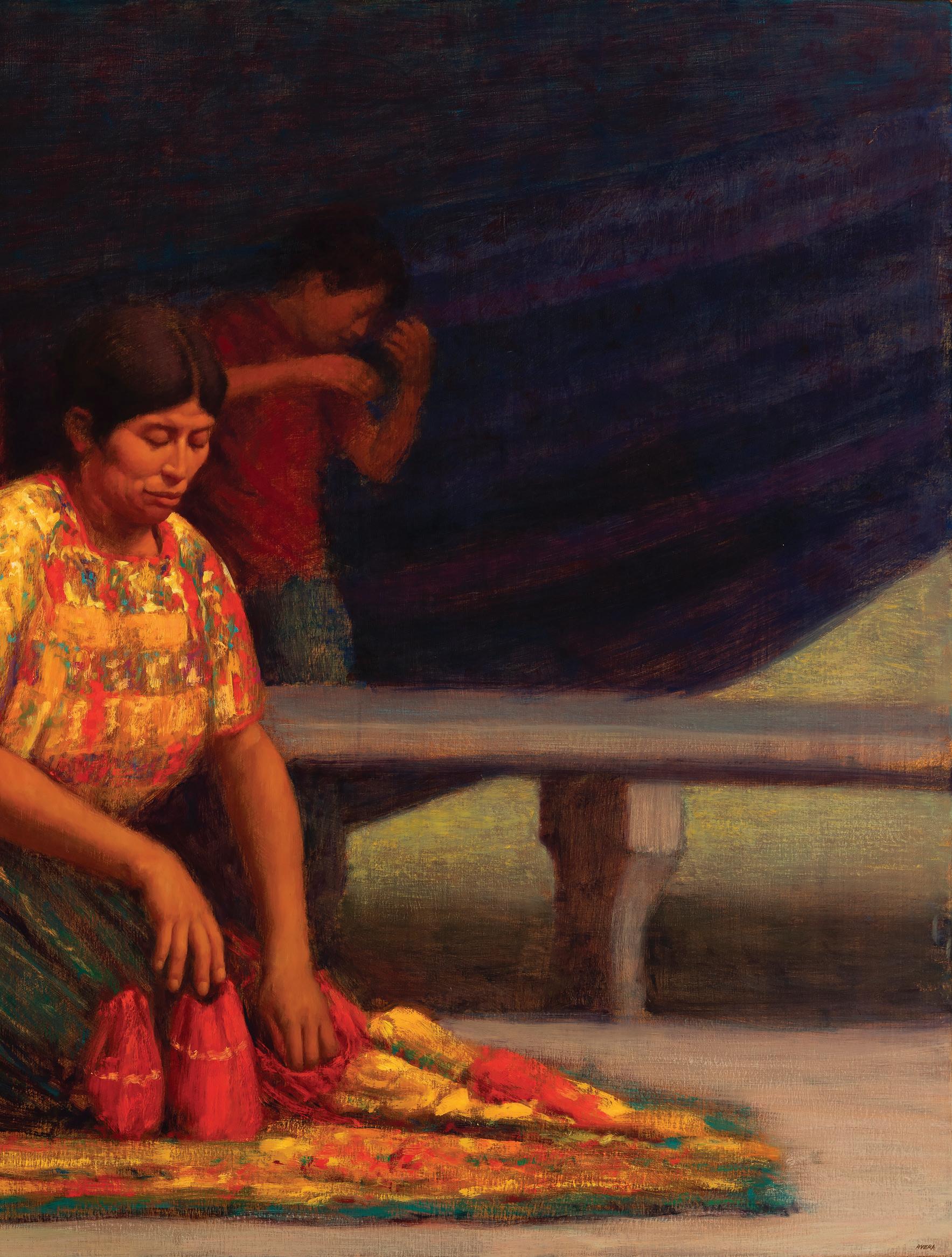 With a successful career spanning more than half a century, Elias Rivera is a renowned Santa Febased painter. In his vibrant works inspired by Dutch and Spanish Old Master paintings, Rivera chronicles vivid scenes of urban life in New Mexico, Guatemala, Mexico, and Peru. Eloquently distilling the essence of daily life in these Indigenous communities, Rivera’s striking canvases are brimming with groups of figures bathed in radiant light and color. Born in Bronx, New York, Rivera attended the Art Students League and the School of Industrial Arts. In 1982, Rivera moved to Santa Fe, New Mexico, and married artist Susan Contreras. In 2004, Rivera received the Governor’s Award for Excellence in the Arts.
