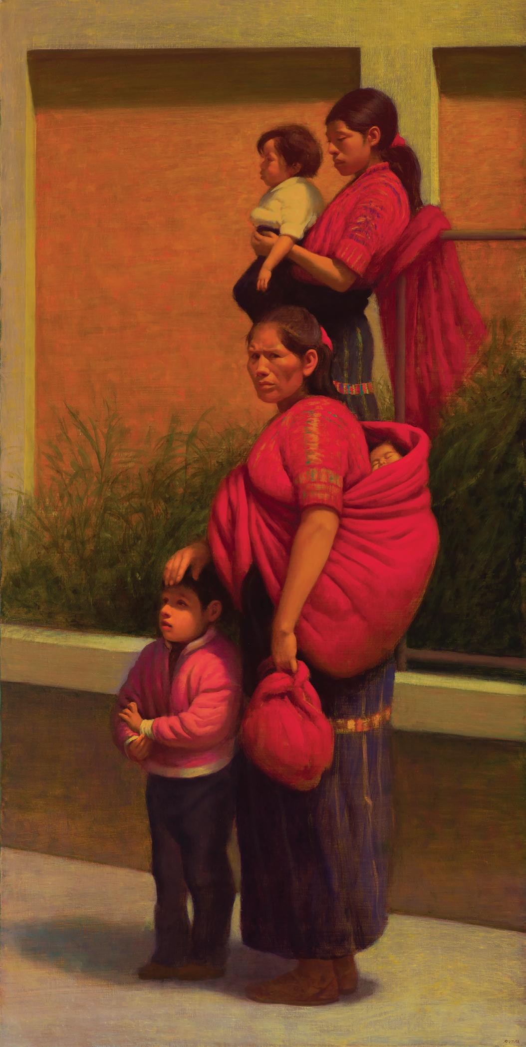 Elias Rivera (1937–2019) Three Generations, n.d. Oil on canvas, 84 x 42 inches