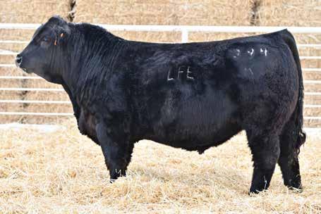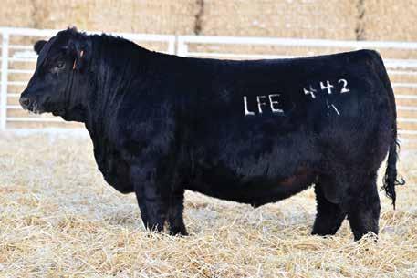 83 LFE DUTTON 3040G LFE BA LASS 124G COLEMAN BRAVO 6313 LFE BA CHINOOK 2055E LFE SROKA 399D LFE BA LASS 71A Purebred BW - 90 ADJ WWT - 942 Black ADJ YWT - 1483 CE BW WW YW MILK MCE 8 20 100 55 2.1 6 Lewis 419K REG # 2288484 - LFE 419K - 23-Jan-22 LFE BA 611 LFE DUTTON 3040G LFE BA DIAMOND MIST 657F COLEMAN BRAVO 6313 LFE BA CHINOOK 2055E SAV SENSATION 5615 LFE BA DIAMOND MIST 74Z Purebred BW - 88 ADJ WWT - 818 Black ADJ YWT - 1326 CE BW WW YW MILK MCE 5.5 20 101 57 2.4 3.5 Lewis 403K REG # 2296630 - LFE 403K - 19-Jan-22 LFE BA 612 LFE DUTTON 3040G LFE BA LUCY 86G COLEMAN BRAVO 6313 LFE BA CHINOOK 2055E HF UNIT 55E AMF LFE BA LUCY 629D Purebred BW - 96 ADJ WWT - 918 Black ADJ YWT - 1415 CE BW WW YW MILK MCE 3 21 95 55 3.7 1 Lewis 305K REG # 2288472 - LFE 305K - 1-Jan-22 LFE BA 613 LFE DUTTON 3040G LFE BA ABIGALE 111Y COLEMAN BRAVO 6313 LFE BA CHINOOK 2055E SAV FINAL ANSWER 0035 SAV ABIGALE 9142 Purebred BW - 65 ADJ WWT - 830 Black ADJ YWT - 1273 CE BW WW YW MILK MCE 12 22 82 49 -2.7 15 Lewis 452K REG # 2288490 - LFE 452K - 3-Feb-22 LFE BA 614 LFE 111Y - DAM LFE 74Z - MGD LFE 71A - MGD Black Angus Yearling • Herd sire LFE Dutton might be the most impressive angus bull to breed cows at LFE, he was the lead off bull in our 2021 sale, selling to Rocking Heart Range for $55,000 • First crop of sons are powerful individuals, with extra mass and rib • Dutton son off a youthful Sensation daughter • Grand dam LFE 74Z is a hard working Net Worth daughter that’s paid for herself 6-7 times over • Dutton son with all the bells and whistles • Competes in the top 10% of the breed or better on all performance data • Youngest calf in this angus division. Final Answer dam has been at the forefront of our cow herd