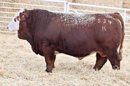 75 LFE SWAGGER 518F SBV CHOICE 180D BBBG WRANGLER 3S SBV MERLOT 641Z DOUBLE BAR D FOUNDER 170Y SBV CHOICE 862B Fullblood Horned BW - 108 ADJ WWT - 871 Nondiluter ADJ YWT - 1401 CE BW WW YW MILK MCE MWWT STAY API TI 93.59 64.07 16.2 77.1 -0.6 39 76.2 109.5 1.4 7.2 Mark 538K REG # 1412411 - SBV 538K - 13-Jan-22 SBV 525 SBV REPUTATION 707F SBV HILDA 702A CHERRY CREEK GLITZ 4D SUNNY VALLEY RHEA 54C LRX JUSTICE 33U NUG HILDA 953W Fullblood Horned BW - 100 ADJ WWT - 926 Nondiluter ADJ YWT - 1492 CE BW WW YW MILK MCE MWWT STAY API TI 99.85 67.11 14 76.9 2.8 40.2 73.3 110.5 4.4 5.7 Mark 560K REG # 1412415 - SBV 560K - 25-Jan-22 SBV 526 ELM TREE ENCOUNTER 18E SBV MISS BEAT 303F ELM TREE ZANDER 11Z DFM UNA 827U LFE CAMERO 510B SBV MISS BEAT 94C Fullblood Horned BW - 106 ADJ WWT - 984 Nondiluter ADJ YWTCE BW WW YW MILK MCE MWWT STAY API TI 95.04 62.97 17.2 73.7 1.6 35.7 75.9 105.7 5.4 4.9 Mark 707J REG # 1407147 - SBV 707J - 26-Sept-21 SBV 527 REG # 1419832 - SBV 549K - 17-Jan-22 Mark 549K SBV 528 LFE MURRAY 503F SBV ROSE 403G LFE CAMERO 510B SBV MISS BEAT 120C LFE INSCRIPTION 570E SBV ROSE 224E Fullblood Horned BW - 90 ADJ WWT - 887 Nondiluter ADJ YWT - 1343 CE BW WW YW MILK MCE MWWT STAY API TI 91.28 61.72 15.6 74.7 5.9 37.6 74.2 104 5.5 5.4 REG # 1407150 - SBV 708J - 26-Sep-21 Mark 708J SBV 529 ELM TREE ENCOUNTER 18E SBV MISS BEAT 303F ELM TREE ZANDER 11Z DFM UNA 827U LFE CAMERO 510B SBV MISS BEAT 94C Fullblood Horned BW - 102 ADJ WWT - 991 Nondiluter Jan 10 WT - 1650 CE BW WW YW MILK MCE MWWT STAY API TI 95.04 62.97 17.2 73.7 1.6 35.7 75.9 105.7 5.4 4.9 ENCOUNTER-SIRE REPUTATION-SIRE • Sire LFE Swagger is a 641Z son. Swagger is a brother to lots 505, 506, 507 • Big scrotal, stout made, big footed Swagger son • Single entry from Reputation, Reputation Sold to Black Gold and Bohrson Marketing in the 2020 sale for $160,000 • Dam is a dark red hard working 8-year-old, maternal brother sold to Grant Ford • Full brothers sired by Elm Tree Encounter • Extra age bulls built to breed more • Dam SBV 303F is a daughter of SBV 94C • Full brothers sired by Elm Tree Encounter • Extra age bulls built to breed more • Dam SBV 303F is a daughter of SBV 94C Fullblood