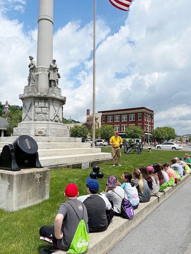 Above, the Geisinger School of Nursing in downtown Lewistown, is credited with bringing nursing students to downtown; right, students learn about monuments in downtown Lewistown; far right, pictured is an ice sculpture outside the historic courthouse in downtown Lewistown.