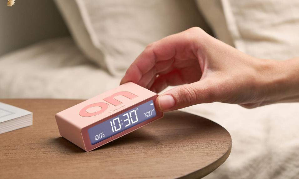 Réveil réversible - Faces ON/OFF - Ecran LCD - 3 niveaux de luminosité - Touchez pour répéter l’alarme & l’éclairage - Autonomie : jusqu’à 6 mois - Temps de charge : 4h - Rechargeable par USB-C (cable inclus). Matériaux: ABS.