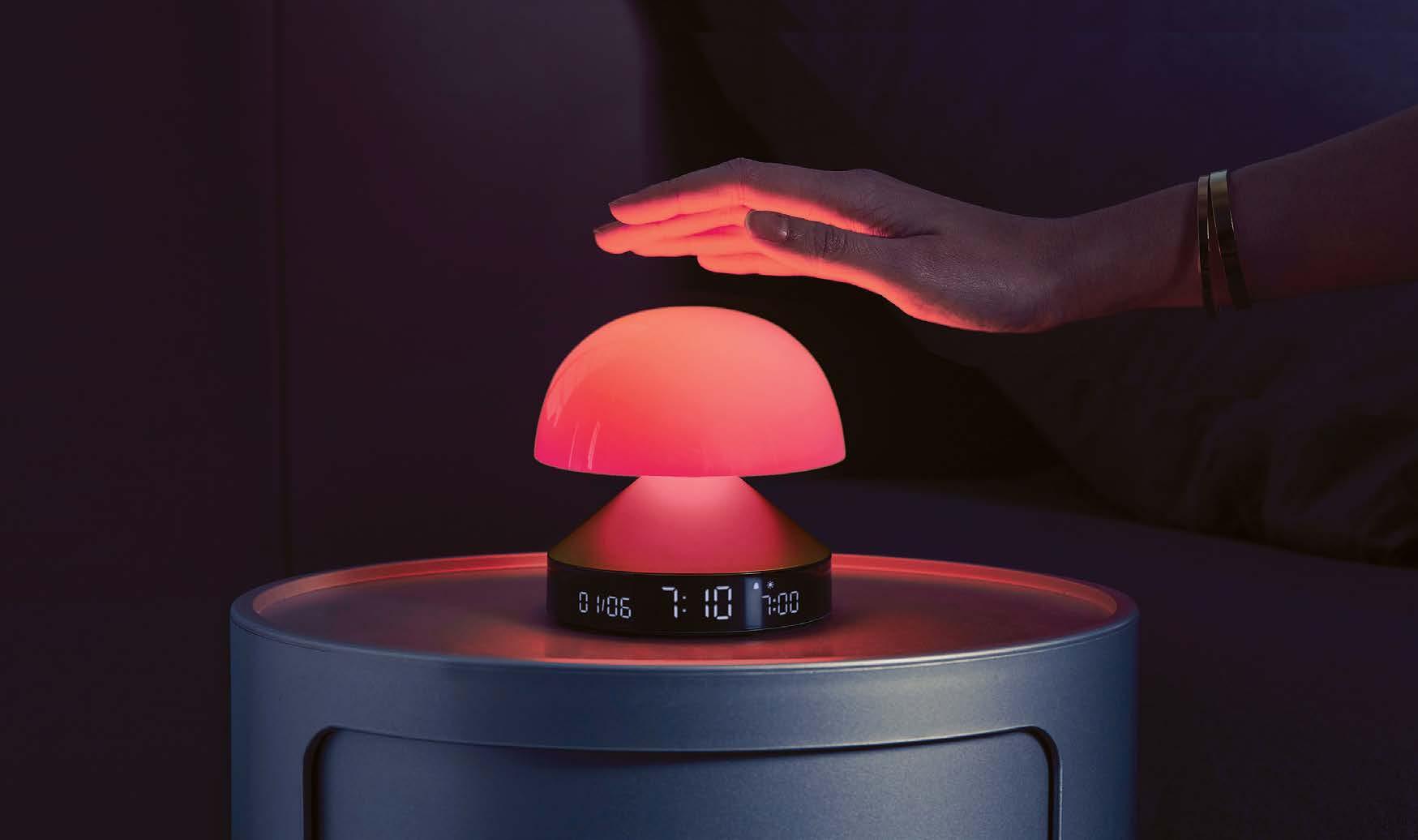 Sunrise alarm clock - Pure VA LCD display – Sunrise & Sunset simulation – Melodies & natural sounds – Lamp with 9 LED colors - Maximum light output: 70 lm – Dimmer – Touch controls - Rechargeable - Up to 4 months of battery life - Charging time: 5h - Rechargeable via USB-C (cable included)Material: Aluminum - ABS.