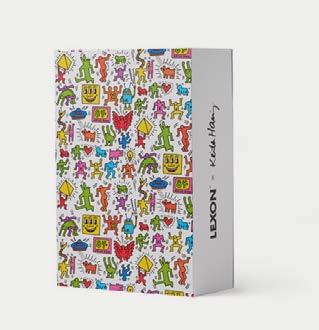 Produit en série limitée, ce co ret cadeau exclusif comprend les quatre produits Lexon capturant l’essence des chefs-d’oeuvre de Keith Haring.