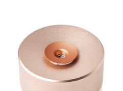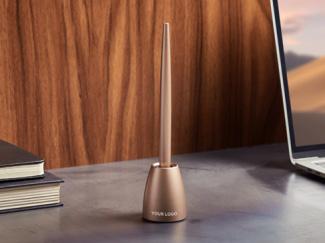 Infinitely pairable mini Bluetooth® speaker - Touch control on base for audio controls and volume adjustment - Hands-free microphone - Selfie control - Battery life: Up to 3h - Rechargeable via USB-C (cable included) or wirelessly - Charging time: 1h - Material: Aluminum-ABS. Suggested brnading: silkscreen - laser.