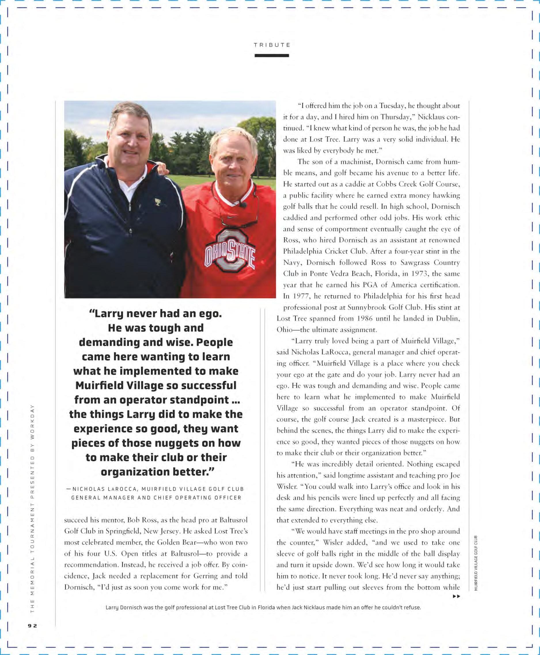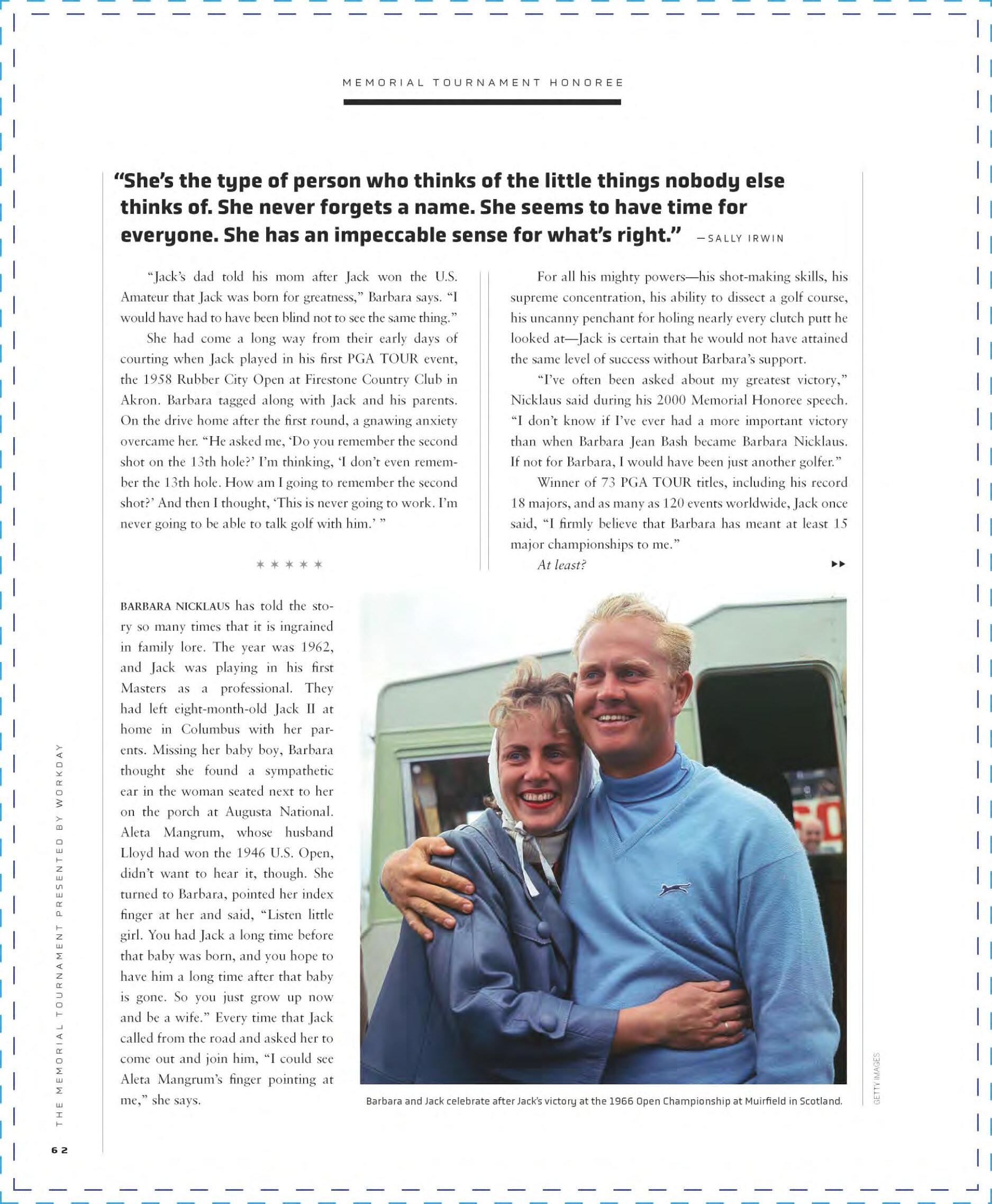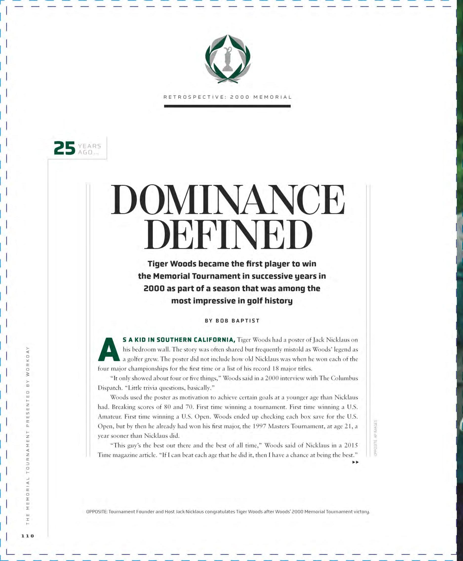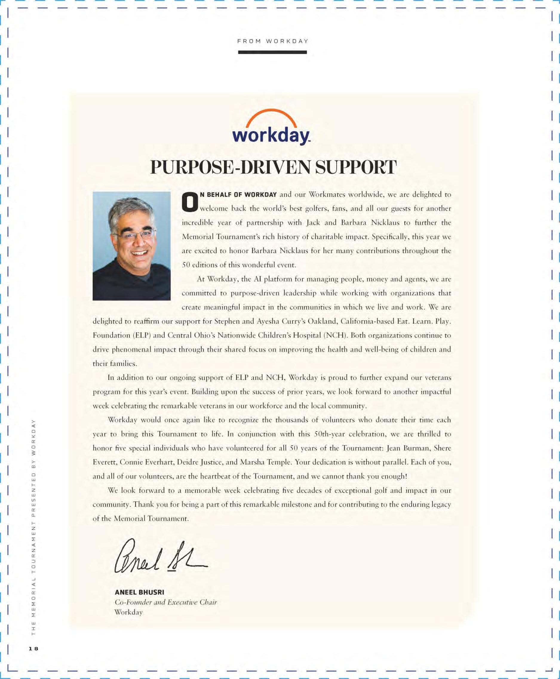 Hosted annually at Muirfield Village Golf Club in Dublin, Ohio, a suburb of Columbus. The Tournament, founded and hosted by Jack Nicklaus, is conducted each year with three goals in mind: to honor the memory of individuals living and deceased who have distinguished themselves in the game of golf; to showcase the world’s best golfers competing on one of the most challenging venues in the world for the enjoyment of spectators; and to benefit many Greater Columbus Charities in alliance with the Nicklaus Children's Healthcare Foundation, Nationwide Children's Hospital, Eat. Learn. Play. Foundation and numerous other local organizations.
