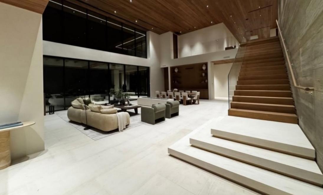 ketveri laiptai 2200 m² ploto rezidencijoje su 15 automobilių garažu, dviem baseinais, kino sale ir vyno kambariu. Šis namas stovi toje pačioje gatvėje kaip ir „LeBron James“ rezidencija, pastatyta