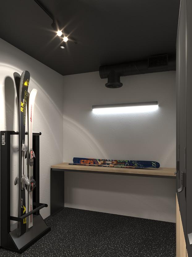 Each apartment comes with two secure ski lockers with boot dryers, accommodating eight pairs of skis. Enjoy the convenience of mountain living at its finest.