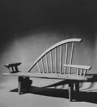 This chair is called the “Fishtail Chair” as its curved wooden backrest resembles a fishtail. This piece of wood was procured from a timber mill belonging to a furniture maker. It was presumed to come from parts of a boat. I selected these for their unusual form and imagined that if they were assembled into a chair, the results would be very interesting. When it was completed, it was displayed in an exhibition and purchased for use in guestrooms in a hotel in Bangkok. One hundred reproductions of this chair were subsequently made.