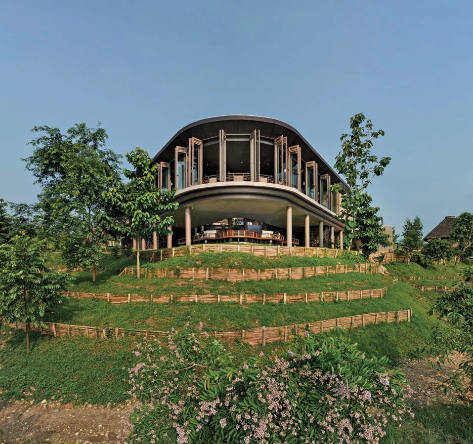 The villas and restaurant feature rammed-earth walls, constructed from on-site soil, serving as the main structural element. This sustainable method establishes a profound connection to the Earth, providing a sense of warmth and authenticity. The unique villa shapes take inspiration from the river stones found on-site, reflecting the natural elements of the area. Additionally, the design pays homage to traditional Thai northern vernacular architectural villages, skillfully blending tradition with contemporary sensibilities. The strategic placement of villas and the restaurant maximizes this visual splendor. Guests can fully immerse themselves in the tranquil ambiance, savoring the serene beauty of the river and its surroundings.