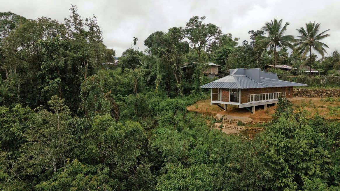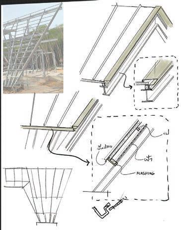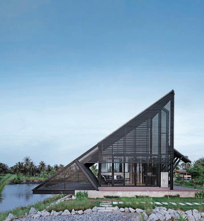 The design process is focused on the utilization of interior space. The challenging site of Koh Paluay, situated on a hill with deep slopes and subjected to constant rainfall and heavy winds, influenced the unique slope design of the plans. This distinctive roof slope serves the dual purpose of efficient drainage during rain and control of humidity within the building.