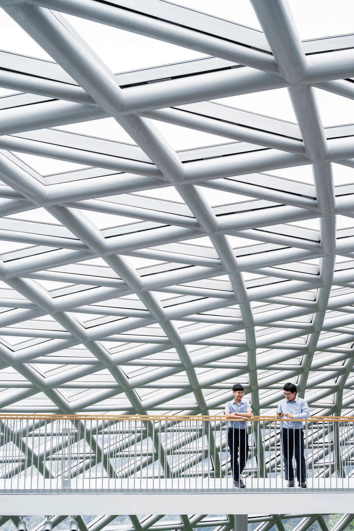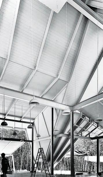 The juxtaposition of the natural roof and industrial steel skeleton makes the architecture both local and universal, allowing for coexistence and creating a space that is open to all.