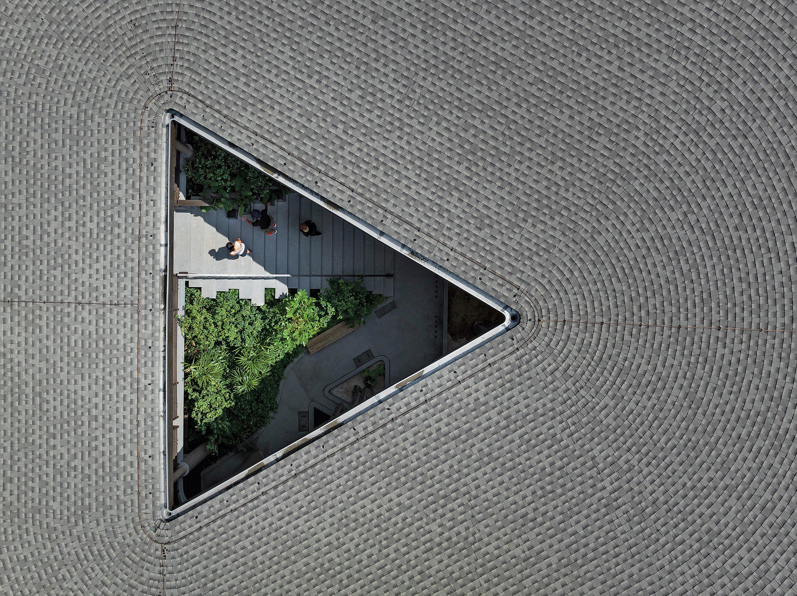Surrounded by tall trees, this semi-outdoor structure serves as a place for locals to relax and gather. On weekends, it transforms into a bustling market with various vendors. In designing this architecture, planners’ intent is to create a structure deeply connected to its surroundings while being open and accessible—a fusion of multiple perspectives and meanings.