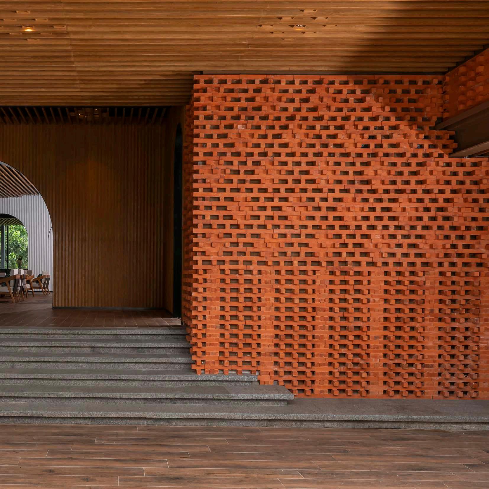 This riverside property is located on the banks of the Mae Ping River and is surrounded by traditional riverside communities where fences serve simply as demarcation, and mostly comprise of trees, while the river-facing side of the properties are left unfenced. The layout of the house was based in this characteristic and inspired by traditional Chinese houses which have rooms built around four sides of a central courtyard, offering privacy from outsiders. The buildings are connected by terraces enclosed by a wall on the outer side and archways separating the interior spaces, providing security and privacy to the courtyard area, while respecting the traditional openness of using plants as demarcation and unfenced riversides. As such, the house is in harmony with the surrounding community.