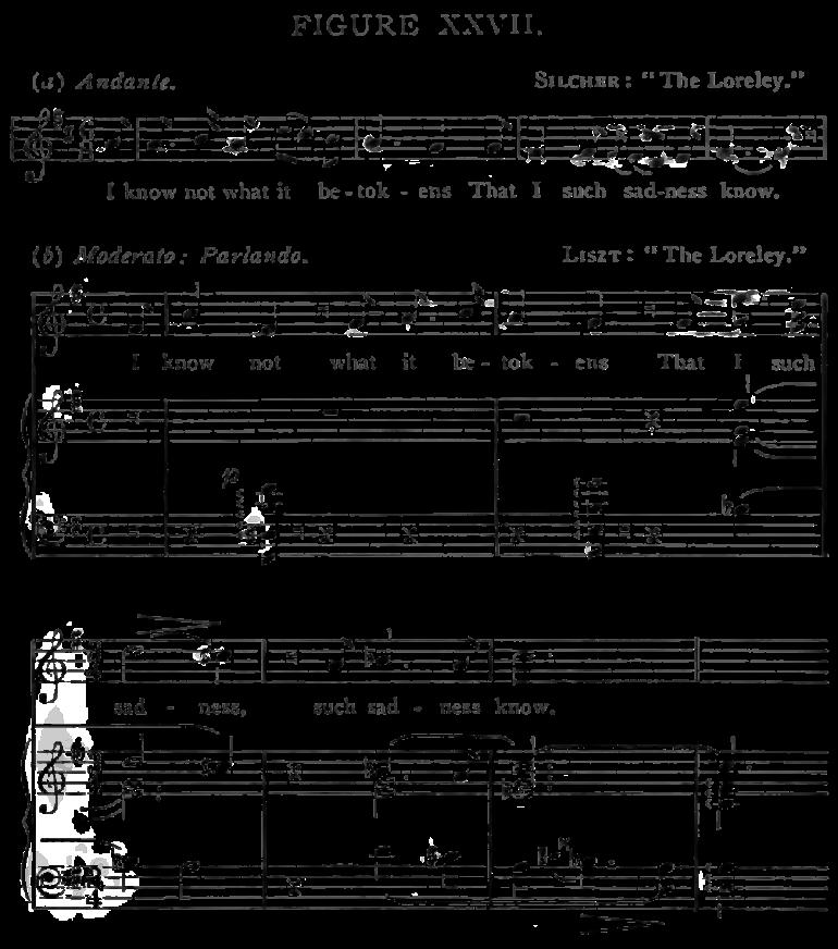 engaged their deepest feelings; and in the case of Burns, as well as that of Moore, it is by the first lines of their poems that many of the traditional Scotch and Irish airs are now known. Here the similarity ceases, however, for while Burns frequently took the old words and the idea they contained, recasting both in a truly poetic and much more beautiful form, Moore usually wrote an entirely original poem in what he conceived to be the spirit of the melody which he had in mind.