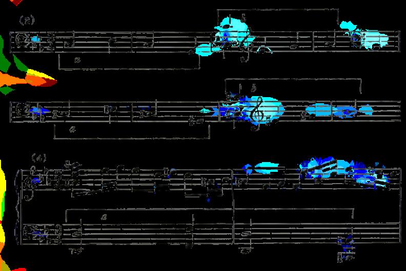 The Seventh (C — B), on the contrary, are harsh and rasping. Their tones do not merge, but “quarrel,” as we say of inharmonious colors. Therefore we will call these “dissonances,” because the two tones in them sound apart.