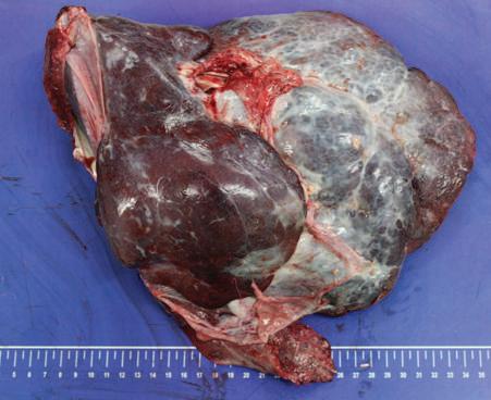 Alpaca, fígado. Fígado com múltiplos nódulos associados a hiperplasia dos hepatócitos.