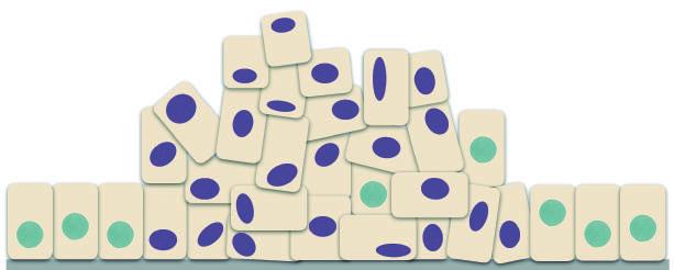 As células apresentam alterações na maturação, que se traduzem num aumento da sua proliferação, na presença de multiestratificação e na desorganização arquitetural. As alterações nucleares são, em geral, discretas.