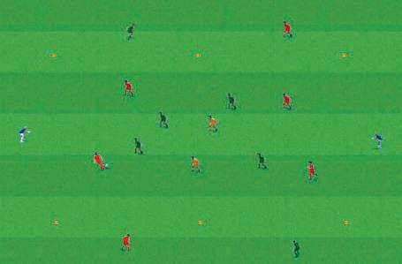 Podem ser incluídos manequins no espaço para condicionar as linhas de passe. Variante: os elementos no meio poderão sair na pressão ao GR.