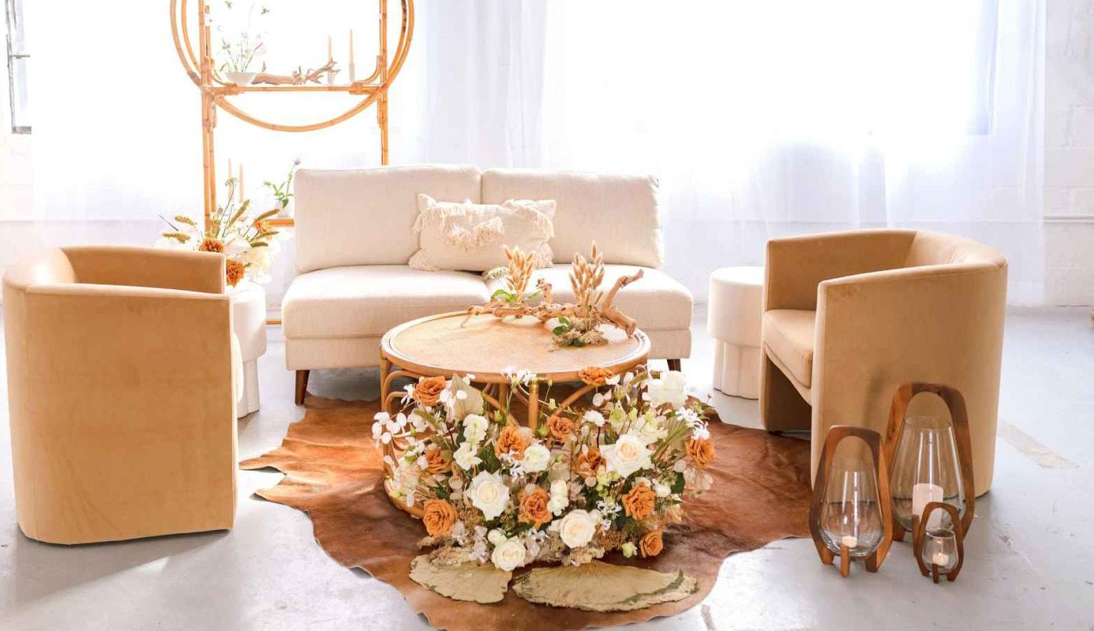 The florals in this shoot were designed to feel lush, natural and full of movement. Fleurish Atelier used a mix of amaranthus, lisianthus, hydrangea, calla lilies, roses and anthurium, layered with green blooms and foliage to create an organic, garden-grown vibe. Each flower added something unique—from the softness of lisianthus to the bold structure of anthurium—resulting in sculptural, romantic arrangements that felt truly alive. With artistry and intention, they transformed the space into something modern, soulful and deeply rooted in nature!