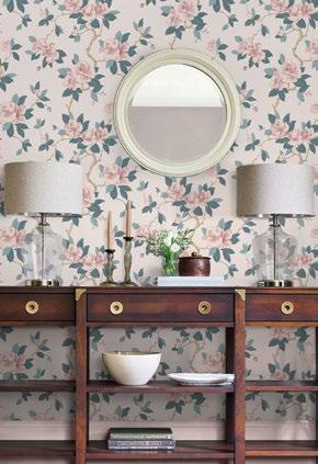 Joining Eltham are the Summer Peony pattern, a delightful design that captures the exuberance of peonies in full bloom, and Flora which is inspired by mid-18th century calicoes that once travelled from India to Europe, a delicate floral trail that’s versatile and understated for any room.