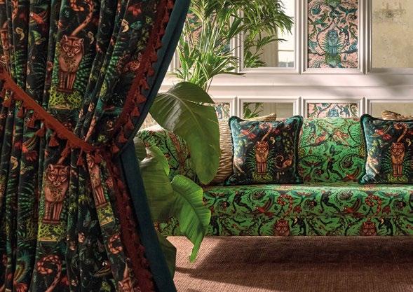 And, for a softer touch, Ruskin offers a woodland escape, blending flora and fauna into a tonal print that brings the serenity of the countryside indoors – shown here in the Emerald green colourway.