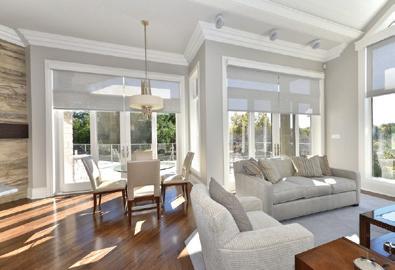 Potted lights in the main living area with the 16-foot vaulted ceiling add a softness and can be dimmed if desired.