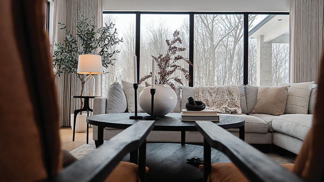 Throughout the Bridlewood home, furnishings were provided by Modern Living London, helping Morphy realize her modern, cozy feeling. The soft window coverings were created by Covers Designers Edge. Formed Metal Co. made the custom metal pieces. As well as the kitchen cabinetry, Del Priore Kitchen and Bath created the bar, bathroom vanities and mudroom bench. Peter's Carpentry made the great room builtins and wall millwork.