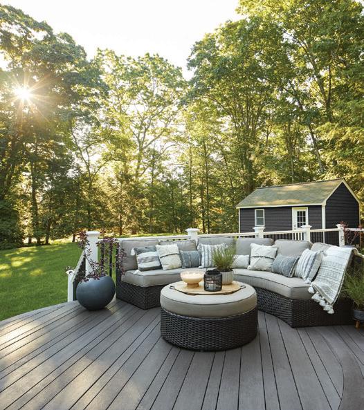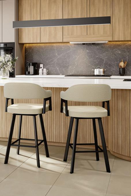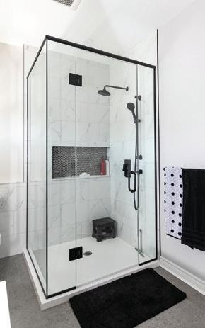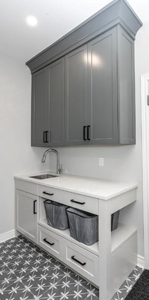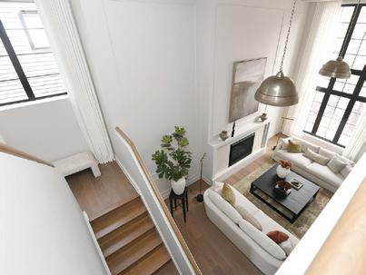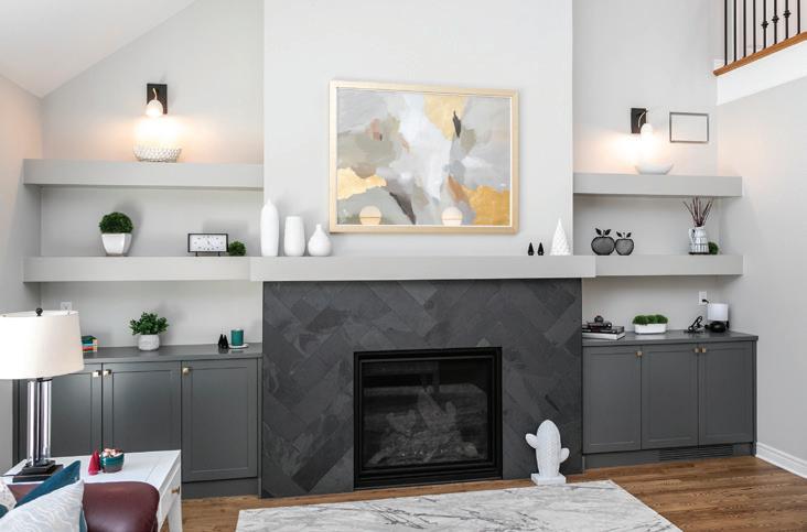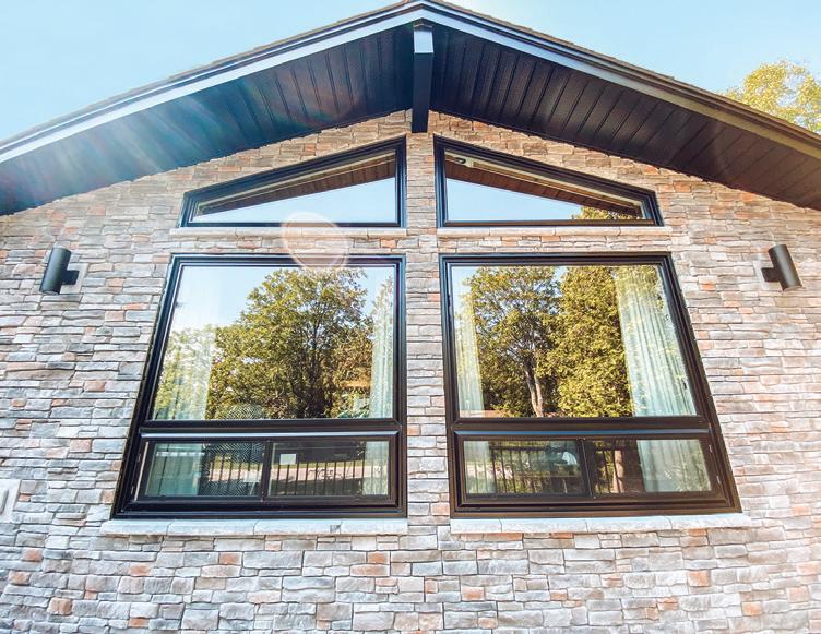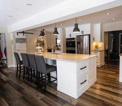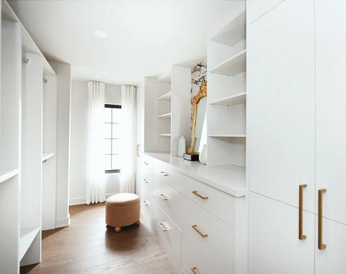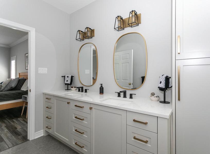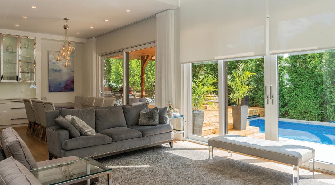 mostly recycled material and even the concrete is a special low-emission mixture. The lot, which backs on to Warbler Woods — prized for its flowering plants, trees, wildlife and trails — influenced much of the design inside and out. “The plan was customized to take advantage of the surroundings,” says Brown. “The woods drove the design. The overall aesthetic is natural, not really modern so it would blend with its neighbours.”