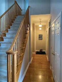 A side entrance leads to the main level or to a partiallyfinished basement, allowing options.