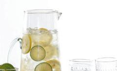 1 Pour 16 cups of water into a pot, squeeze in the juice of half a lime, and then put both lime halves in the pot, add the salt and peppercorns, and bring to a boil. Add the shrimp, cover the pot, and remove from the heat. Let stand for 5 minutes or until the shrimp turn pink. Using a slotted spoon, immediately transfer the shrimp to a sieve and run under cold water for 45 seconds to stop the cooking.