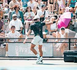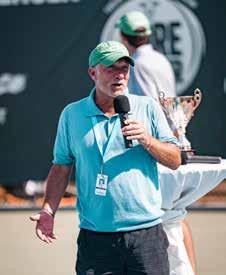 1: Tournament Founder David DeMuth at the Championship Trophy Presentation. 2: Andres Martin and Mark Lajal. 3: Andres Martin, Slade Rogers, Preston Booker and Mark Lajal. 4: Cranbrook Tennis Classic. 5: Mark Lajal after winning the Cranbrook Tennis Classic. 6: Andres Martin after hitting a backhand winner. 7: Andres Martin after winning the first set.