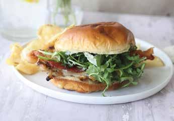 Lightly butter the inside of the bun and toast in a skillet or oven until golden brown. Spread a layer of garlic aioli on the bottom bun. Add the sliced grilled chicken breast. Place the pepper jack cheese over the hot chicken to slightly melt it. Layer on the crispy bacon slices. Add halved cherry tomatoes and a small handful of arugula. Spread the jam on the top bun. Enjoy!