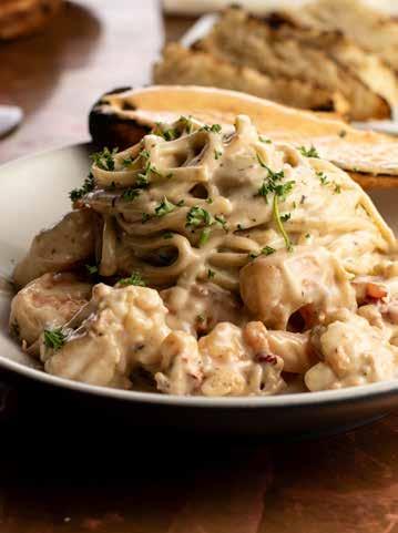 A: I have been experimenting with new wild game entrées since landing the job at The Cork Tucson in April 2024. The first time we did bison osso buco was on the Valentine’s Day menu this year as one of the main dish options, and it was a hit! The second rendition of this dish was one of our “Summer Getaways,” and I’m very excited to announce we’re adding it to the fall/winter menu this year. It’s a coffee-rubbed, mesquite-smoked bison osso buco, served over goat cheese mashed potatoes with charred baby carrots, pickled onions, and espresso demi-glace. This dish is a direct result of Jeff Hughes and me throwing out wild ideas to craft meals that we enjoy. I truly believe this dish represents The Cork Tucson and its legacy quite well.