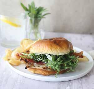 Lightly butter the inside of the bun and toast in a skillet or oven until golden brown. Spread a layer of garlic aioli on the bottom bun. Add the sliced grilled chicken breast. Place the pepper jack cheese over the hot chicken to slightly melt it. Layer on the crispy bacon slices. Add halved cherry tomatoes and a small handful of arugula. Spread the jam on the top bun. Enjoy!