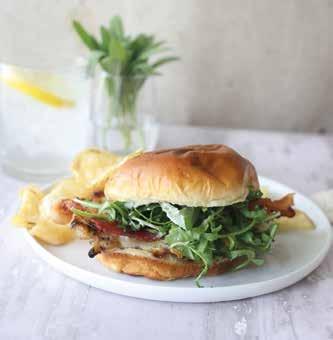 Lightly butter the inside of the bun and toast in a skillet or oven until golden brown. Spread a layer of garlic aioli on the bottom bun. Add the sliced grilled chicken breast. Place the pepper jack cheese over the hot chicken to slightly melt it. Layer on the crispy bacon slices. Add halved cherry tomatoes and a small handful of arugula. Spread the jam on the top bun. Enjoy!