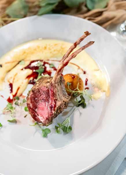 As the evening progressed, the fourth course showcased a stunning lamb rack drizzled with a creamy brie and Pinot Noir glaze, served alongside scalloped potatoes and roasted eggplant hummus. This beautifully crafted dish was paired with the “Reagan Reserve”/“Mount Eden Clone” Pinot Noir from the Santa Cruz Mountains, 2020. The wine’s elegant structure and bright acidity enhanced the flavors of the lamb, while the brie glaze added a luxurious touch, leaving guests in awe of the culinary artistry on display.