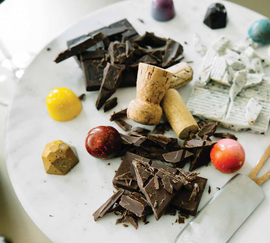 Wine and chocolate have a lot of similarities to each other. Both contain flavanols (antioxidants) and polyphenols (compounds found in plant-based food) that are good for you and have anti-inflammatory properties. These characteristics affect flavor so it’s somewhat challenging to pair wine and chocolate together. The more polyphenols, the more pronounced the bitter taste.