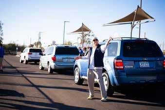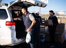 8: Diablo Gary Matchinsky (left in blue vest) loads the turkeys at the Tempe Diablo’s Feed the Need event. 9: Diablo Bill Ottinger and the Tempe Diablos delivered Thanksgiving meals to over 400 families. 10: Arnold Mejia, Diablos 2nd VP, supervises the delivery of meals to over 400 families. 11: Diablos president Brad Cox [left] oversees the distribution of the meals. 12: Diablo Mark Mitchell organizes the flow of families from the local community. 13: Diablo Russ Homes says, “Keep ‘em comin’!” 14: Boxes were lined up and filled with turkeys, fresh vegetables, and dry goods to feed 400 families.