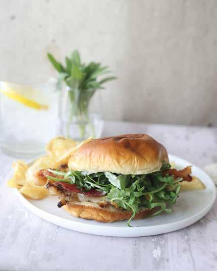 Lightly butter the inside of the bun and toast in a skillet or oven until golden brown. Spread a layer of garlic aioli on the bottom bun. Add the sliced grilled chicken breast. Place the pepper jack cheese over the hot chicken to slightly melt it. Layer on the crispy bacon slices. Add halved cherry tomatoes and a small handful of arugula. Spread the jam on the top bun. Enjoy!