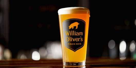 dogs, William Oliver’s offers robust, diverse flavors and timeless favorites. True to its carnivorous, pork-loving theme, nearly every dish can be paired with bacon - or you can go all in and order a pint of bacon with maple syrup for dipping. Herbivores, don’t worry: vegetarian and vegan options are plentiful, from a house-made hummus platter to vibrant salads and the scratchmade red bean chili, there is something for everyone!